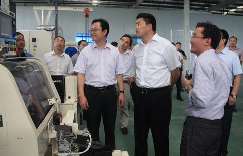 林书成市长(前排右1)在李亿中总经理(前排右2)陪同下现场调研精工公司