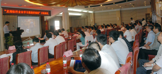 本网讯 为学习标杆企业成功经验,迅速掌握房地产开发经营管理新方法和新工具,提升房地产专业管理水平。5月11日,集团公司“龙湖标杆学习高级研修班”开班授课。部分集团公司经营班子成员、各部门总监(主任),房地产事业部及其它企业有关管理人员参加学习。