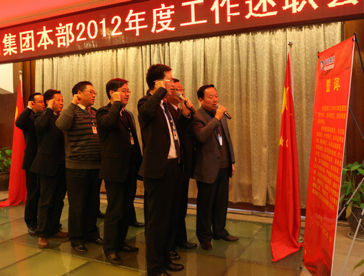 述职结束后,李亿中总经理代表集团公司经营班子与集团公司各部门总监(主任)签订了《2013年度管理责任书》。全体签订了《2013年度管理责任书》的人员庄严宣誓,承诺将遵守约定,坚决完成目标任务。