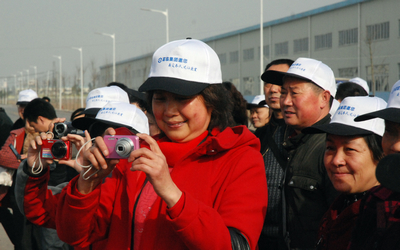 兴致勃勃的市民拍照留念