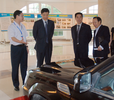 李亿中总经理向王立新行长(左二)介绍野马汽车
