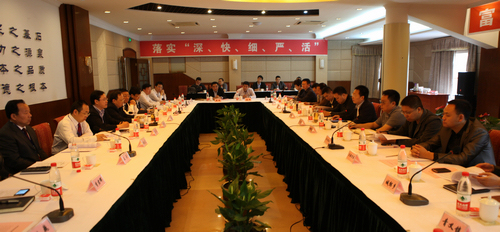 涪城区副区长邓辉星,涪城区有关部门、街道、乡镇主要负责人,集团公司总经理李亿中,集团公司领导曹勇、吕大全、谢忠宪、范如彬、聂丹以及本部各部门总监参加了调研。