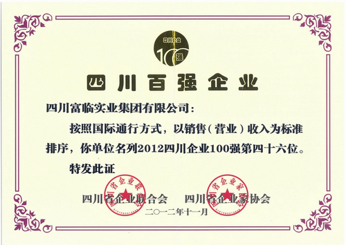 集团公司再次入围年度四川企业100强 荣列第46位