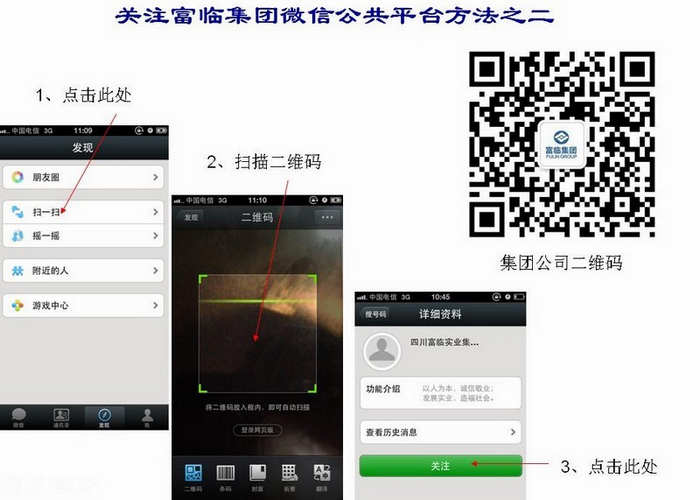 顺应读图时代,引领信息潮流。富临集团微信公共平台已正式开通,敬请各界人士关注(操作方法见附图)。该平台将成为集团公司员工分享集团公司重要信息、重要新闻的又一新兴途径。