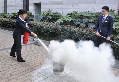 本网讯 11月8日,波尔菲特酒店按照“全国第22个消防宣传周”要求,组织全员开展了消防演练活动。本次演练内容有:火警的接处警、宾客疏散、灭火器的使用、灭火毯的使用等。