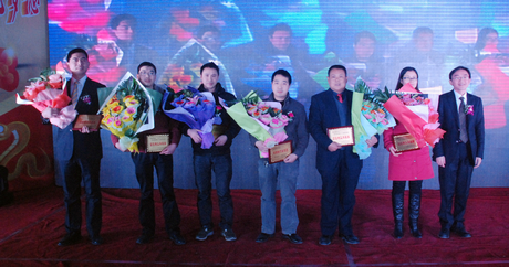 获奖先进在晚会上合影留念