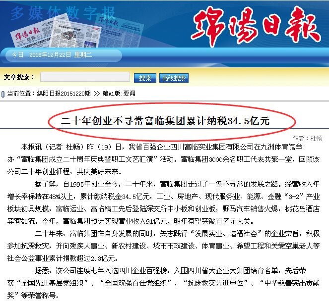 二十年创业不寻常富临集团累计纳税34.5亿元