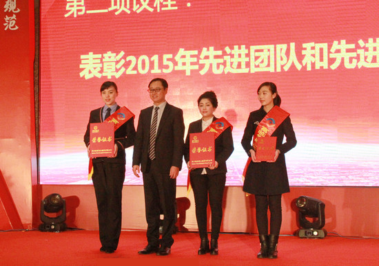 会上,表彰了富临集团2015年度“最佳创新奖”、“优质服务奖”、和“优秀新人奖”,并通过VCR展示了受表彰人员的工作风采。
