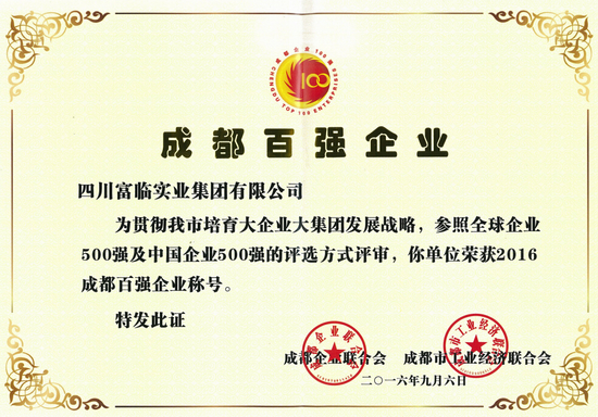 “2016成都企业100强”由成都企业联合会、成都市工业经济联合会、成都企业家协会、成都企业文化协会、《成都工业与企业家》杂志社联合发布,细分为“2016成都企业100强”、“2016成都制造业100强”、“2016成都民营企业100强”、“2016成都服务业100强”榜单。
