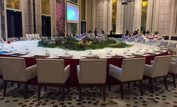 9月20日17:00,酒店四季堂会议刚刚结束,按照接待要求必须在一小时内由会议台型翻成晚宴台型,酒店各部门员工迅速集结到四季堂,酒店领导一声令下,员工们团结协作、分工明确,不到半小时,四季堂完成“变脸”,会议桌椅瞬间变为一张5.4米的大国宴桌,宴会接待准备就绪。桃花岛酒店快速、专业的“翻台”,得到了相关部门的称赞,认为桃花岛酒店宴会翻台在同行业中用时最短、质量最高。