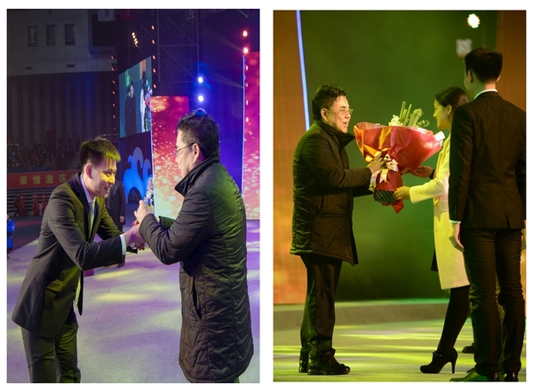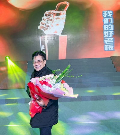 现场颁发了一个十分特别、充满深深敬意和浓浓爱意的奖项。富临集团安董事长从富临一万五千名员工代表曹俊岚和李艺蕾的手中接过了富临全体员工为他颁发的“我们的好老板”奖杯与鲜花。