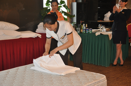 本网讯 为全面提升酒店员工的业务素质和服务水平,近日,酒店公司举行了第三届技能大赛。大赛包括收银点钞、中餐摆台、中式铺床等多个项目,来自酒店公司7个部门的23名员工参加比赛。大赛“以赛代练”,将进一步强化员工的服务意识、宾客意识和竞争意识,助推员工能力提升。(肖萃苹)