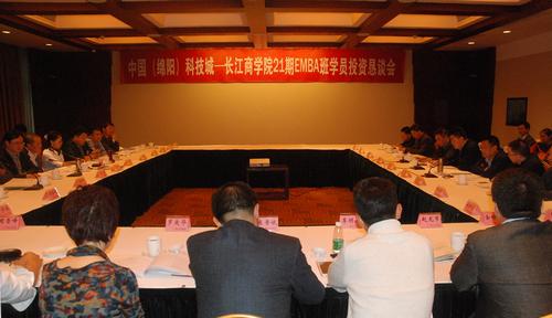 10月19日下午,学员们参加了中国(绵阳)科技城——长江商学院EMBA班学员投资恳谈会,同绵阳市及各有关区县领导欢聚一堂,共同探讨与绵阳科技城实现共赢发展大计。