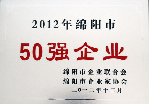 集团公司荣列“2012绵阳市50强企业”第3位