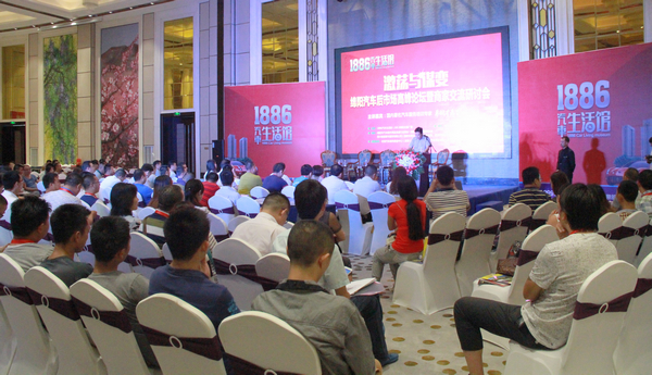 本网讯 7月9日,由富临房产倾力策划的1886汽车生活馆项目牵头主办的2015绵阳市首届汽车后市场高峰论坛暨商家交流研讨会在富临桃花岛国际度假酒店隆重召开。来自绵阳市汽车配件用品流通行业商会、绵阳市汽车美容装饰协会、四川速道赛车服务有限公司(国家体育总局汽运联合会会员、四川汽摩运动联合会会员)及绵阳市众多中高端汽车品牌商、渠道商和汽配电商等行业专家、学者齐聚论坛,共论绵阳市汽车后市场的发展趋势。