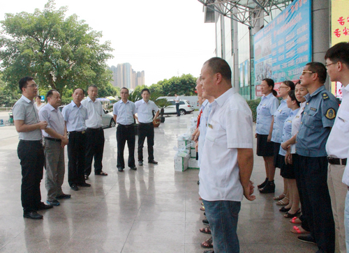 8月6日,绵阳市总工会梁山副主席一行在富临集团公司工会副主席佘培的陪同下,赴富临运业所属南湖客运站看望并慰问在高温下坚守一线的车站员工,并向员工们送上了消暑药、清凉饮品等防暑降温物品,叮嘱他们一定要做好高温期间的防暑降温作,确保身体健康和安全生产。