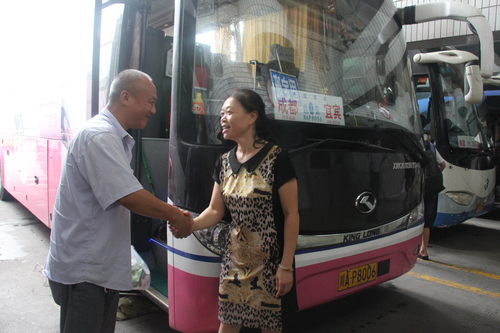 富临长运工会主席曹姝卉在一线慰问员工,送去清凉解暑药品。