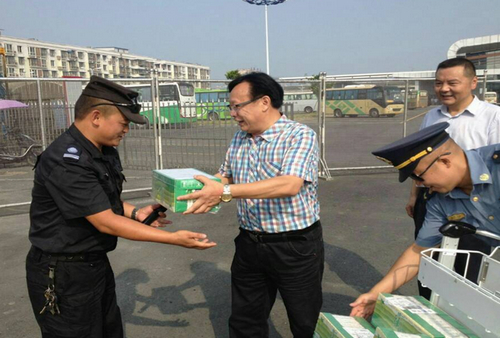 绵阳市总工会梁山副主席向车站员工发放慰问品