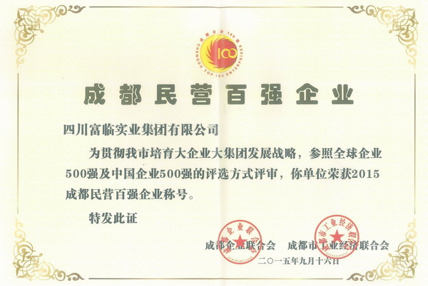 本网讯 9月16日,由成都市企业联合会、成都市工业经济联合会在天府国际金融中心召开的“2015成都百强企业发布会”上,富临集团捷报频传:荣膺“2015成都民营企业100强”第11位、“2015成都服务业100强”第12位”、“2015成都企业100强”第31位。同时,所属野马汽车公司荣膺“2015成都民营企业100强”第92位。